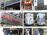 다양한 소재와 디자인의 거리 간판 ‘눈길공항 매체는 디지털사이니지로 변신중홍콩과 국내의 사인문화는 많이 유사해지고 있는 느낌이다. 문사사인 위주의 간판이 많다는 점에서 특히 그렇다. 플렉스나 판류형 간판이 거리를 점령했던 국내의 경우 최근에 대부분의 사인이 문자사인으로 전환됐는데, 홍콩·마카오의 경우도 거리의 사인 대부분이 문자사인으로 채워져 있다. 문자사인의 소재도 보다 다양화된 모습이다. 도트형 LED를 적용한 문자사인과 성형사인, 면발광사인 등 다양한 소재를 활용한다. 간판 전체가 그런 것은 아니지만, 마카오 세나도 광장으로 진입하는 거리는 도트형 LED간판 일색이다. 해당 거리는 국내 종로 거리처럼 시계·쥬얼리샵이 즐비한데, 그곳의 간판은 대부분 도트형 LED 간판을 차용하고 있어 그 또한 하나의 거리의 특색으로 느껴진다. 문자의 특성상 흘림체가 많은 한자가 도트형 LED 문자로 만들어진 것을 보는것 만으로도 이색적이다.
