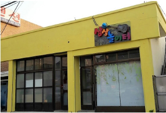 지구본과 기타, 집전화기에서 볼 수 있었던 수화기 연결선(?)이 간판에 사용되니 이색적이다. ‘상상놀이터’라는 간판 이름만큼 풍부한 상상력이 동원된 재미있는 간판이다. 사용된 이색 간판 소재 외엔 단조로운 간판이지만, 매장의 노란 외벽과 묘한 조화를 이루며 시선을 이끈다. 무엇을 하는 곳인지 궁금증을 유발하는 경남 남해의 이색 간판이다.