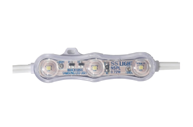 에스에스라이트는 다양한 종류의 사인용 모듈을 보유하고 있는 회사로, 삼성 LED Chip을 적용한 채널용 3구 모듈을 새롭게 출시하였다.본 제품은 독특한 디자인에 초음파 융착 방식의 캡타입으로 기존과 다른 새로운 방식을 채택하였으며, 130도 렌즈 채용으로 빛의 지향각을 넓힌 게 특징이다. 또한, DC12V의 낮은 전압용으로 안정성을 확보하였다. 0.72W/1.0W 2가지 타입으로 출시가 되며, 이 중 10W는 주문형으로 생산이 가능하다.