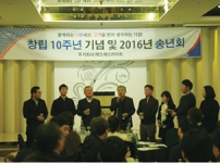 에스에스라이트가 ‘2016년 송년회 및 창립 제10주년’기념 행사를 지난 12월 23일 수원 웨딩의 전당 2층에서 개최했다. 이 자리엔 에스에스라이트 임직원 및 협력사 직원 약 100여명이 모여 성황을 이루었다.