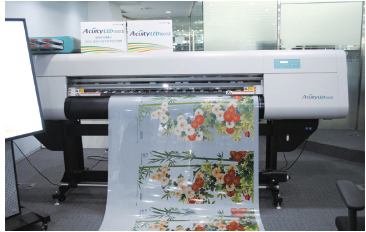 한국후지제록스가 판매하고 있는 ‘어큐어티 LED 1600Ⅱ’ UV 프린터가 주목받고 있다. 이 장비는 LED 램프를 이용한 UV 프린터로 다양한 소재에 고품질 인쇄가 가능한 UV잉크젯 프린터다. 컬러 디지털 인쇄기의 기본 색상인 싸이언(Cyan), 마젠타(Magenta), 옐로우(Yellow), 블랙(Black) 외에 라이트 싸이언, 라이트 마젠타, 화이트(White), 클리어(Clear) 색상을 추가한 8가지 색상의 잉크로 구성되어 있어 출력물의 표현 범위를 확장시키며 동시다층 인쇄가 가능해 작업 시간을 단축시켜준다. 종이 및 시트, 비닐 등 연질소재와 목재, 철재, 유리, 아크릴 등 경질소재에도 인쇄가 가능하게끔 하이브리드 타입으로 제작됐다. 이 제품은 마찰이나 열에 강하고, 황변 현상이 없어 간판, 현수막, POP, 백릿 필름(Backlit film) 등 야외에 노출되는 옥외 광고물이나 매장 쇼윈도 디자인 작업, 백화점 매장 백릿 광고 등을 제작하는데 탁월해 상업적 활용도가 높은 것이 특징이다.