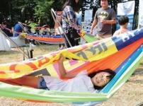 “폐현수막이 흔들 침대가 되었어요, 편히 누워보세요~”