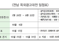 9월 23일까지 옥외광고협회에 작품 접수전라남도가 ‘제 15회 전남 옥외광고대전’을 개최한다.올해로 15회째를 맞이하는 광고대전은 광고업 종사자를 비롯해 일반인,...