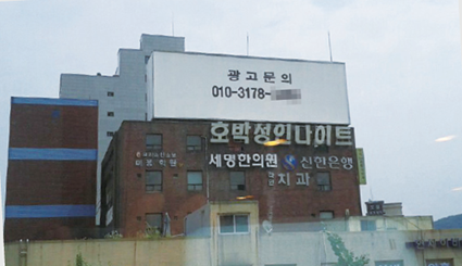 서울의 한 지역 옥상에 있는 광고주를 찾는 옥상 광고판. 서울 시내 곳곳엔 광고주를 찾는다는 이 같은 옥상 광고판과 전광판이 넘쳐난다. 광고 시장에 먹구름이 잔뜩 끼었다는 것을 쉽게 알 수 있다.