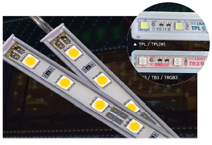 에스에스라이트가 간판 테두리 전용의 LED신제품 라인업을 선보였다. 이번 신제품은 테두리 조명 연출 전용의 3구 LED모듈과 LED바 제품으로 두 제품 모두 12V 무극성으로 제작됐다. 3구형 모듈은 간판에 조화롭게 어울릴 수 있도록 슬림하고 미려한 디자인이 적용됐으며 소비전력 0.72W다. 전용으로 개발된 케이스인 사이드바와 사이트캡과 함께 쓸 수 있어 시공도 편리하다. LED바 제품은 510mm 길이의 30구형 제품(소비전력 7.2W), 1,010mm 길이의 60구형 제품(소비전력 14.4W) 2종으로 출시됐으며, 실리콘 몰딩이 적용돼 실외에서도 안정적으로 사용할 수 있다. 각도조절이 가능한 클립(별도 구매)으로 조명의 조사방향을 조절해 설치할 수 있다. 테두리 LED조명 신제품들은 화이트와 웜화이트, 적색과 청색, RGB 등 다양한 컬러로 제작 가능하다.