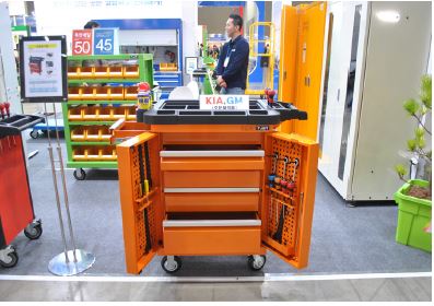 태진이엔지는 많은 공구를 한번에 이동할 수 있는 이동식공구함 ‘KIA,GM’을 출시했다. 이 제품은 기존의 공구함과 달리 이동식 바퀴가 장 착돼 공구 운반용 대차로 활용가능한 게 특지이다. 서랍의 열고 닫음이 아주 매끄럽고, 서랍 내부의 공 간 활용을 극대화 할 수 있도록 3단 개폐식으로 제작 됐다. 서랍 손잡이는 알루미늄으로 제작돼 공구함에서 흔히 발생하는 손잡이 파손 문제를 개선했다. 서랍 전면에 개별 잠금장치를 설치해 공구함 이동시 서랍이 빠져나오지 않도록 해 보다 안전하게 사용할 수 있다. 공구함 전면부에서 공구 걸이대를 부착해 자주 쓰는 공구들을 걸어 놓을 수 있게 한 것도 특징이다.
