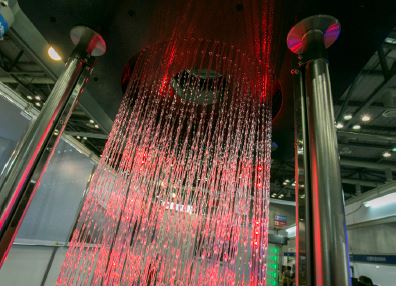 세바시스템즈는 공기정화기능이 있는 인테리어용 LED조명 시스템 프리즘폴을 출시했다. 프리즘폴은 분수와 같은 느낌을 주는 기둥형 LED 조명 제품이다. 프리즘폴의 내부에는 수십여 가닥의 나일론 섬유 가 이어져 있는데, 이 섬유에 LED의 빛이 투사되면 서 신비로운 분위기를 구현한다. 특히 이 섬유에는 점성이 있는 액체가 순환방식으로 꾸준히 흘러내리 면서 작은 폭포와 같은 연출을 하기도 하는데, 이 액 체의 순환으로 공기중의 먼지를 걸러내는 정화작용 을 하게된다. 다양한 크기로 자유롭게 설계할 수 있으며, 공간의 분위기에 맞춰 드라마틱한 형태를 구현하는 것도 가 능하다.
