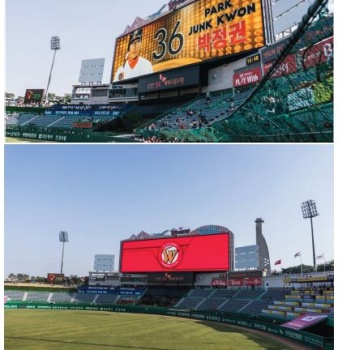 ‘초고화소 VS 초대형’ SK와 삼성 전광판 맞대결야구 시즌의 개막과 함께 야구장의 얼굴이라 할 수 있는 LED전광판 혁신 경쟁에도 불이 붙었다. KBO리그 구단...