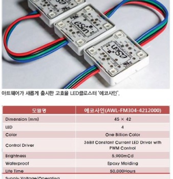 독자 회로 전력 소실 최소화… 30% 전력 절감 별도 전원 없이도 250개까지 직렬연결 가능… 시공성도 탁월풀컬러 LED클러스터 전문기업 아트웨어가 에너지 효율을...