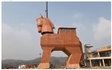 세계 최대 크기와 높이의 ‘트로이 목마’가 여주시 농산로91(상거동 123) 임산물유통종합정보센터에 우뚝 섰다.