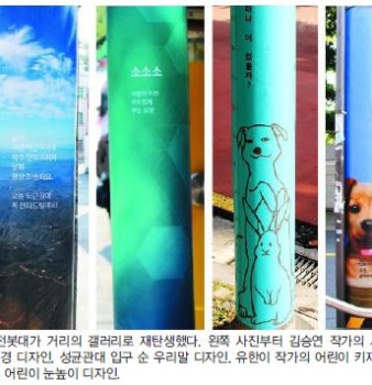성균관로·혜화로 일대 전신주, 디자인 입고 갤러리로 변신불법광고 부착방지 시트에 그림·사진 그래픽 입혀서울 종로구 혜화초등학교 주변 전봇대가 아이들의 눈높이에 맞...