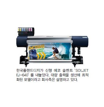 품질과 생산성은 크게 높아지고 운영 비용은 절감최고 속도 102㎡, 출력과 동시에 건조 완료한국롤랜드디지는 지난 10월 27일 새로운 보급형 64 인치 에코 솔벤...