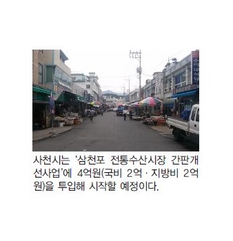 내년 삼천포 수산시장 간판개선 착공, 약 4억원 투입사천시가 행정자치부에서 추진 중인 ‘2016년 간판개선 시범사업’에 ‘삼천포 전통수산시장 간판개선사업’을 응모...