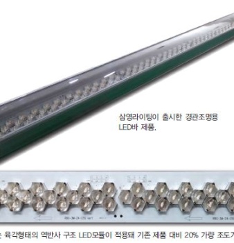 독자기술인 육각 반사형 LED모듈 적용… 조도 20% 향상LED조명 개발업체 삼영라이팅(대표 조경제)은 획기적으로 조도를 향상시킨 역반사 구조의 경관조명용 LED...
