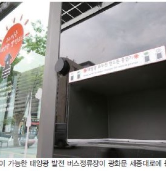 서울시, 광화문에 휴대폰 충전되는 태양광 버스정류장 구축 시간 당 60개 휴대폰 충전되는 전력 생산서울시가 광화문에 설치한 태양광 발전 버스정류장이 화제다. 서울...