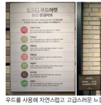 유기농 콘셉트 따라 사인도 소재 고유의 느낌 강조 날 것 그대로 쌓는 벌크진열에 맞춰 칠판형 입간판 적용목동에 ‘라이프스타일스토어’인 ‘SSG 푸드마켓 목동점(이...