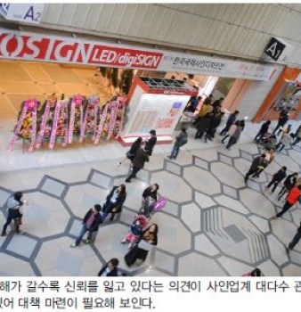 매년하던 부대행사·똑같은 제품 전시, 몇 년째 변함없이 도돌이표 일부 업체, “코사인전 참가 비용을 하반기 고객 서비스용으로 사용할 것”‘2015한국국제사인디자인...