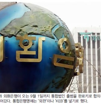 9월 1일까지 통합법인 출법 완료… 통합은행명에 ‘외환’ 또는 ‘KEB’ 포함하나은행과 외환은행의 인수합병 절차가 초읽기에 들어갔다. 두 은행은 오는 9월 1일까...