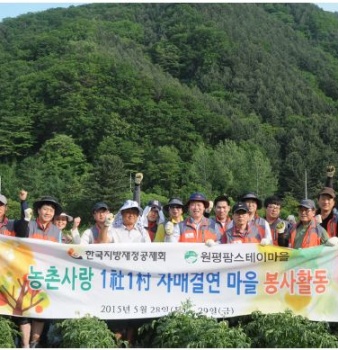 한국지방재정공제회 임직원들은 지난 5월 28일부터 이틀간 강원도 원평팜스테이마을에서 농촌봉사활동을 펼쳤다.6년째 농촌봉사활동… 쌀 구매 후 독거노인에 기부도한국지...