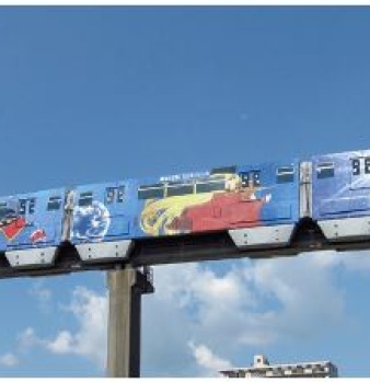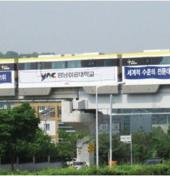 영남이공대학교의 이미지 광고를 싣고 달리는 대구 3호선 모노레일의 모습.화성엔신, SK텔레콤·대구은행·대구백화점 등과 광고계약 체결지상철 래핑광고 통해 다채롭고 ...