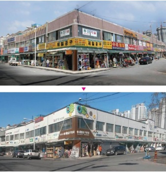옥외광고 우수지자체를 가다 ① 청주시청 건축디자인과 광고물팀지난해 완료한 복대동 공구상가의 간판정비 전(위), 후 사진. 공구상가가 밀집된 지역의 특성을 살린 디...