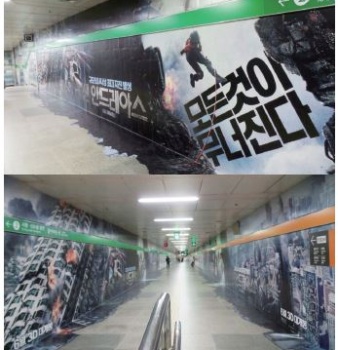 ‘모든 것이 무너진다’는 문구와 함께 대지진 상황 리얼하게 표현오는 6월 4일 개봉을 앞둔 대지진을 소재로 한 영화 ‘샌 안드레아스’가 지하철 연결통로에 영화의 ...