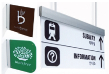 유니크한 디자인의 돌출 조명 간판단면 브라켓 타입으로 시공 간편… SMPS도 내장사인테크는 세련되고 유니크한 디자인이 적용된 돌출간판 시리즈를 전개한다. 일반적인 라이트패널과 달리 단면 브라켓 방식을 적용해 별도의 테두리가 없는 깔끔한 디자인이 장점. 실사 출력 시트 또는 컷팅 시트를 화면에 부착하는 방식으로 사용되며, 전면 개폐가 가능해 이미지 교체나 내부 LED의 AS 모두 간편하게 이뤄진다. SMPS가 내장돼 전선 연결작업을 최소화할 수 있고 브라켓 타입이어서 시공도 간편하다. 각진 엣지의 L타입과 모서리가 둥근 D타입 두 가지 디자인이 있으며 화면 사이즈는 두 제품 모두 300×300㎜, 400×400㎜로 제작된다. 더 큰 사이즈는 주문 제작 가능하다. 벽면이 아닌 천장에 부착해 사용할 수 있는 행잉 타입 제품의 경우 최대 400×1200㎜까지 제작 가능하다.